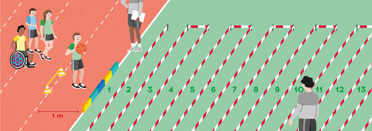 Achte Übung im Bewegungsfeld „Laufen, Springen, Werfen“.