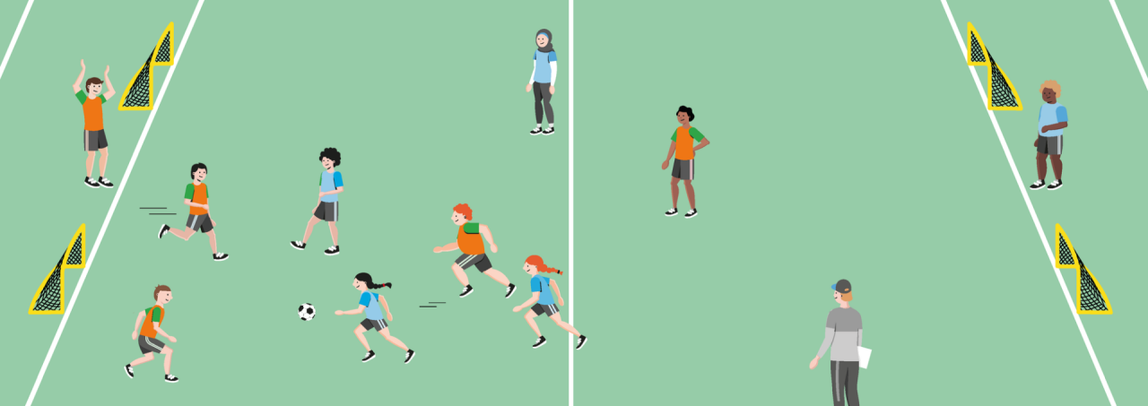 Achte Übung im Bewegungsfeld „Parteiball- und Zielschussspiele“.