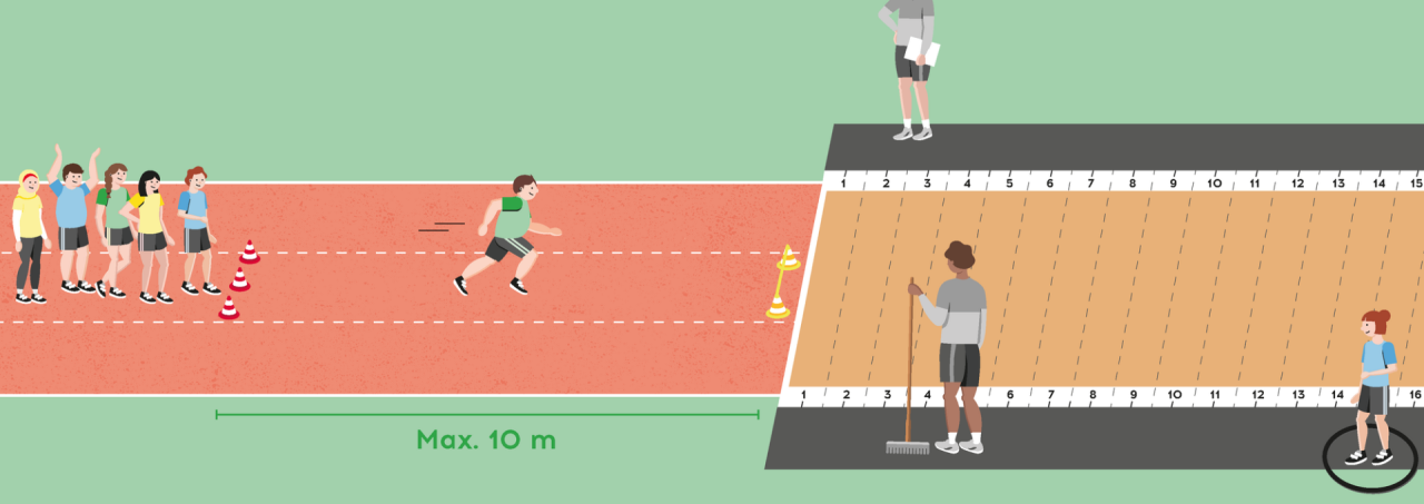 Erste Übung im Bewegungsfeld „Laufen, Springen, Werfen“.