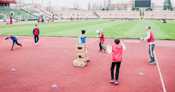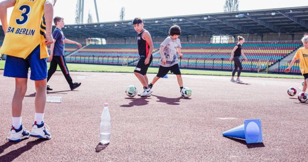Kegelfußball ist ein Wahrnehmungsspiel für Grundschulkinder. In dieser Variante beschützen die beiden Teams ihre Kegel und versuchen gleichzeitig, mit Bällen die Kegel des anderen Teams umzuschießen.