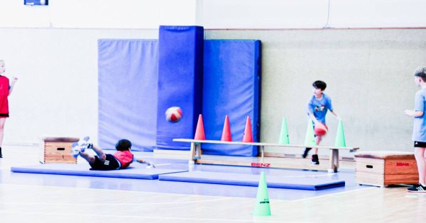 Kartensammeln ist ein Chaosspiel, bei dem sich die Kinder selbst in der Halle orientieren müssen und trotzdem als Team zusammenarbeiten. Es lässt sich sehr gut mit unterschiedlichen Bewegungsarten kombinieren. In dieser Variante müssen die Kinder zusätzlich einen Ball dribbeln.