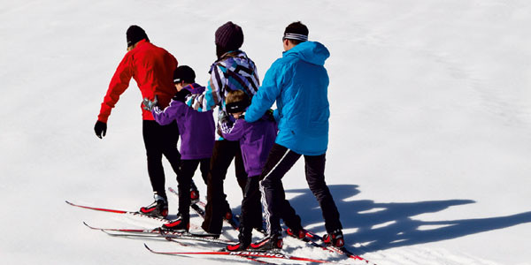 Die SuS bleiben in den Paaren zusammen und fassen sich je an zwei Slalomstangen an. Der Vordermann gibt nun den Takt und den Laufstil vor. (Diagonal, Doppelstock mit Zwischenschritt, 2:1, 2:1 mit aktivem Armschwung; 1:1).