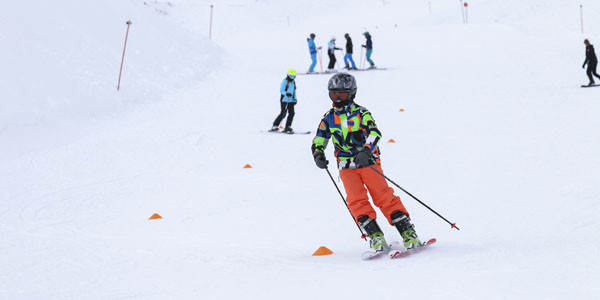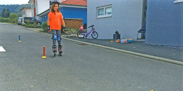 Der LuL baut einen Pylonenslalom mit symmetrischer Spuranlage auf, wo die SuS in gleichmäßigem Tempo durchfahren. SuS sind fortgeschrittene Skifahrer. Sie beherrschen sichere Pflugkurven und Pflugbremsen in leicht fallendem Gelände.