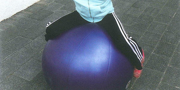 Der Pezziball kann für unterschiedliche Standgleichgewichtübungen verwendet werden. Da er eine sehr labile Unterlage bildet, empfiehlt es sich, mit Hilfestellung zu arbeiten. Durch das Schließen der Augen kann man den Schwierigkeitsgrad weiter erhöhen.