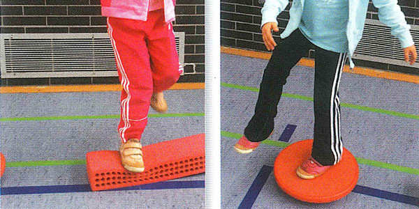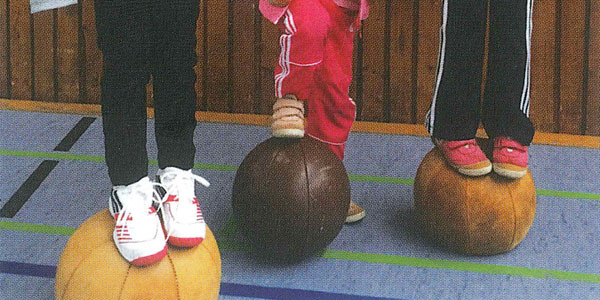 Im Stand auf zwei Beinen sollen unterschiedliche Aufgaben und Bewegungsformen durchgeführt werden. Dabei soll der Untergrund sowie die äußeren Eindrücke auf die SuS variiert werden. Bei dieser Übung erfolgt die Variation durch die Auswahl der verschiedenen Untergründe sowie der äußeren Eindrücke auf die SuS.