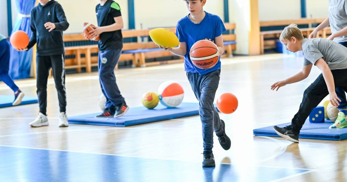 verschiedene große und kleine Bälle wie Medizinball, Basketball, Fußball, Softbälle, Tennisbälle etc.