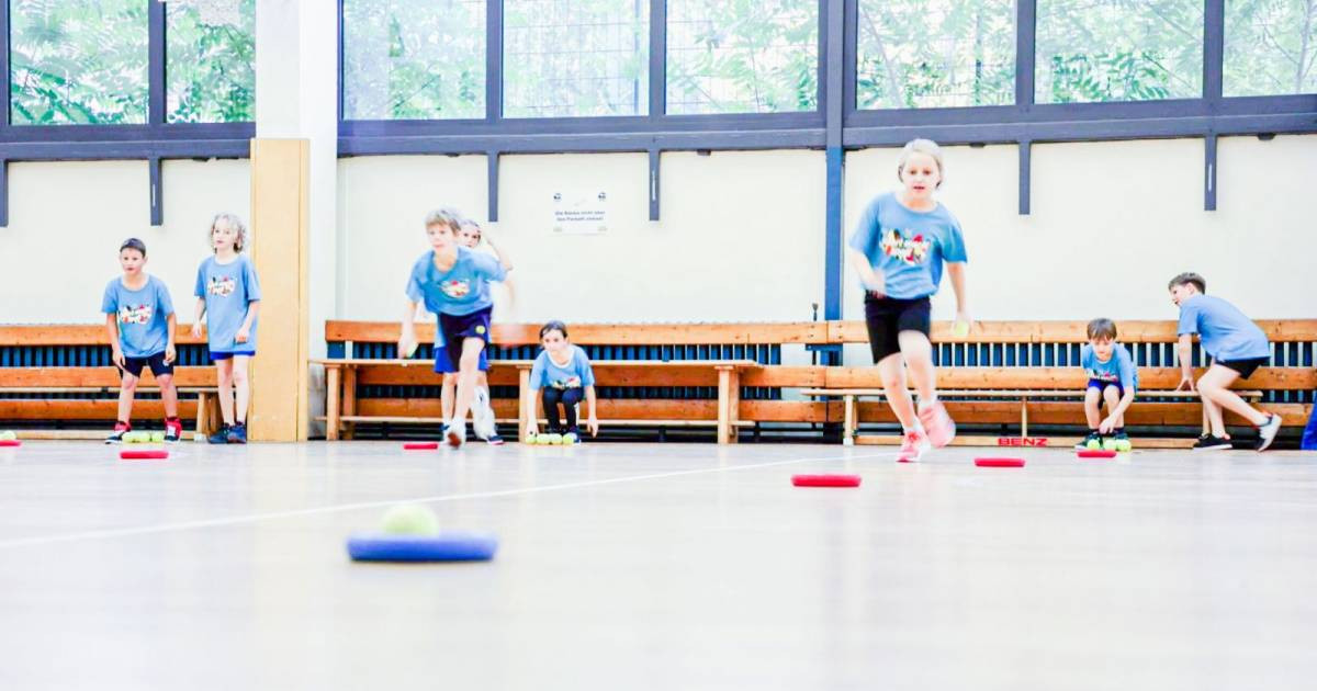 Ball ablegen ist ein Laufspiel, bei dem die Kinder in Staffeln gegeneinander antreten und Tennisbälle zu verschiedenen Ringen bringen müssen. Nicht nur die Schnelligkeit entscheidet, sondern auch die richtige Teamstrategie: Welches Mitgied der Staffel übernimmt die längeren, welches die kürzeren Strecken?
