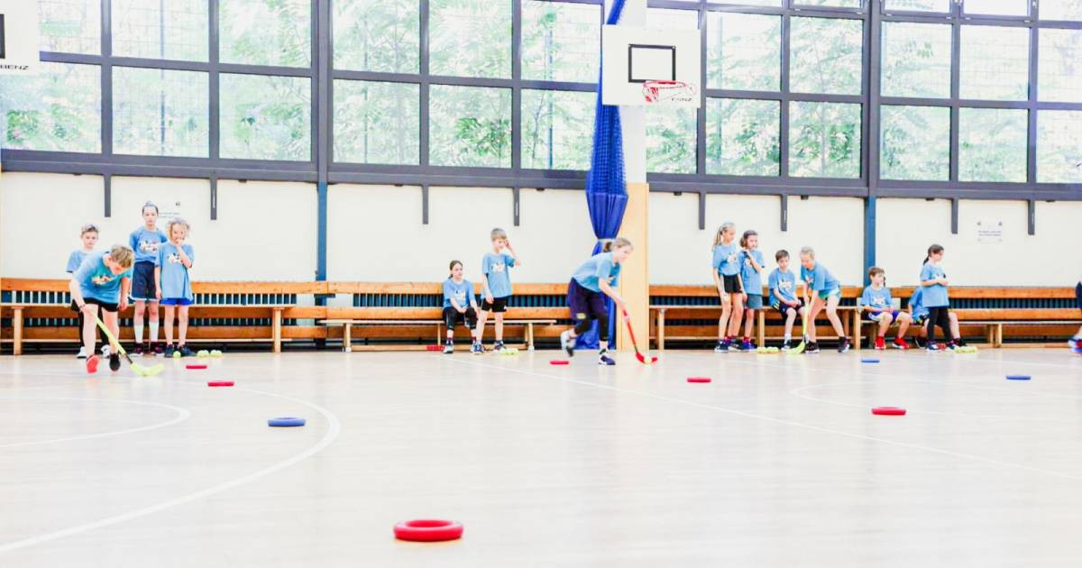 Ball ablegen ist ein Laufspiel, bei dem die Kinder in Staffeln gegeneinander antreten und Tennisbälle zu verschiedenen Ringen bringen müssen. Nicht nur die Schnelligkeit entscheidet, sondern auch die richtige Strategie. In dieser Variante führen die Kinder ihre Bälle mit Hockeyschlägern zum Ziel.