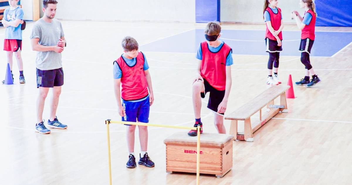 - Die Kinder starten partnerweise zusammen den Parcours, Partner A verbindet sich davor die Augen