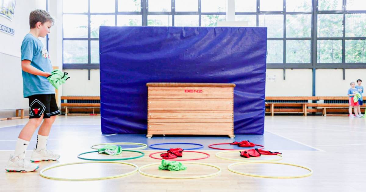 - Sind alle Leibchen verteilt, müssen die Kinder ein bereits abgelegtes aufheben und in einem anderen Reifen ablegen