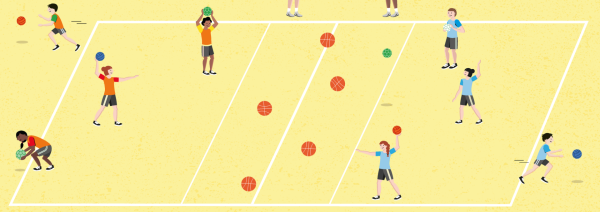 Vierte Übung im Bewegungsfeld „Parteiball- und Zielschussspiele“.
