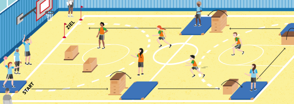 Elfte Übung im Bewegungsfeld „Parteiball- und Zielschussspiele“.
