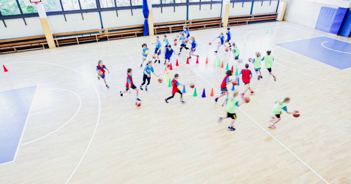 Laufen um den Mittelkreis: Mit Basketball und Massenstart