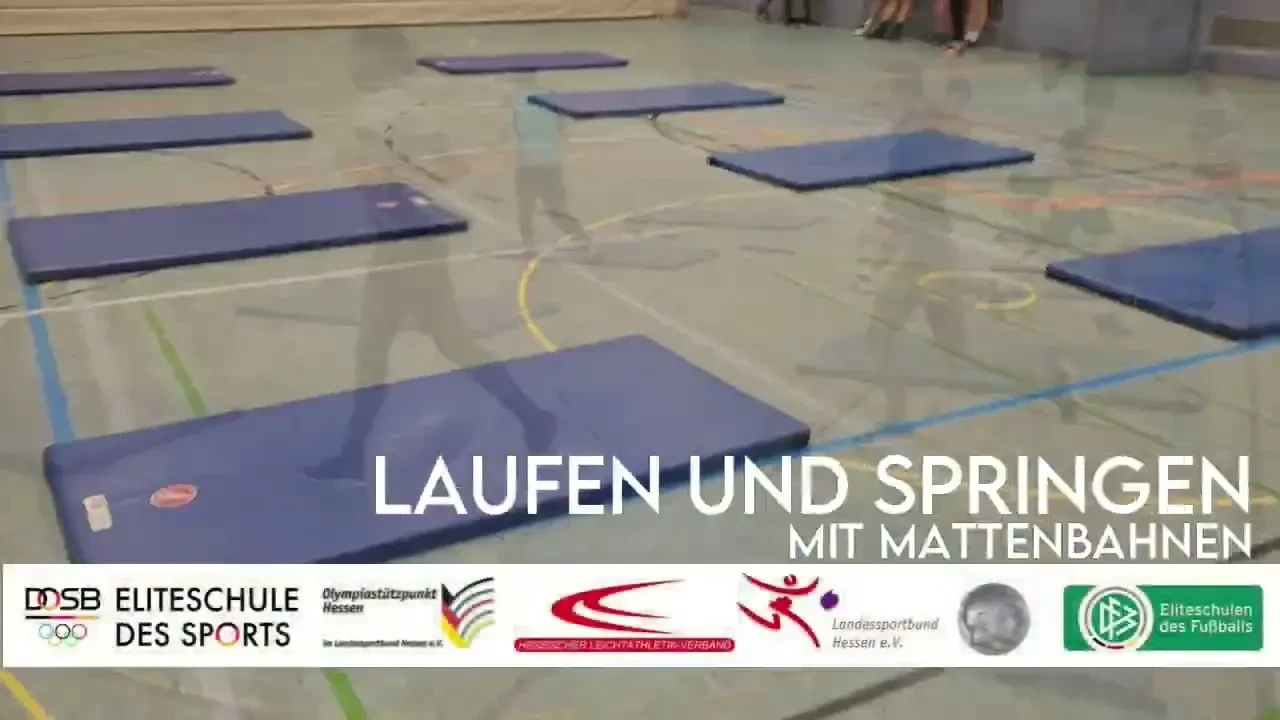 Laufen und Springen mit Mattenbahnen. Ablauf, Varianten und Coaching-Hinweise werden kompakt gezeigt.