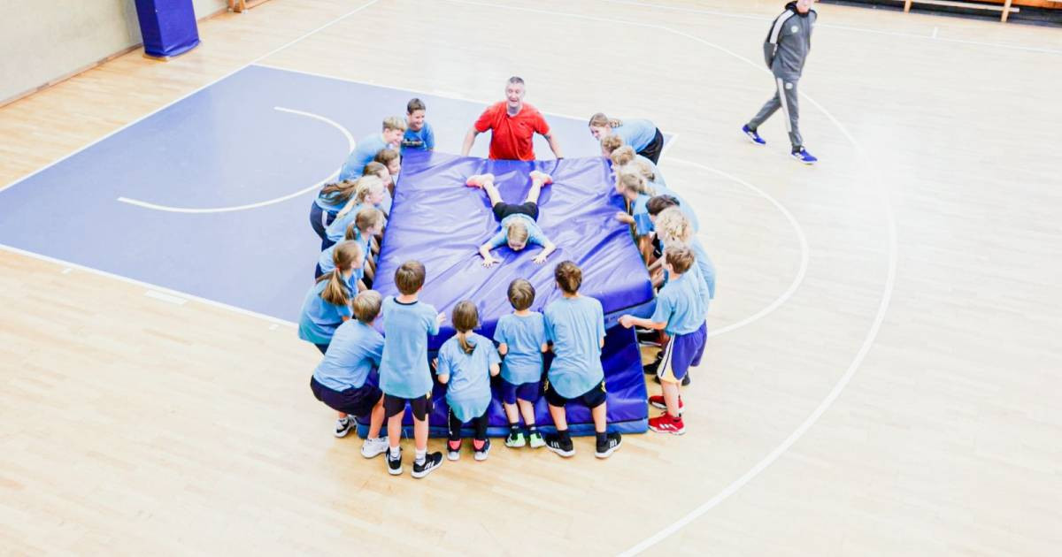 Matten-Sandwich ist die ultimative Mutprobe für Grundschulkinder. Ein Kind legt sich auf eine Matte, die anderen heben die Matte hoch und lassen sie mit dem Kind wieder fallen.