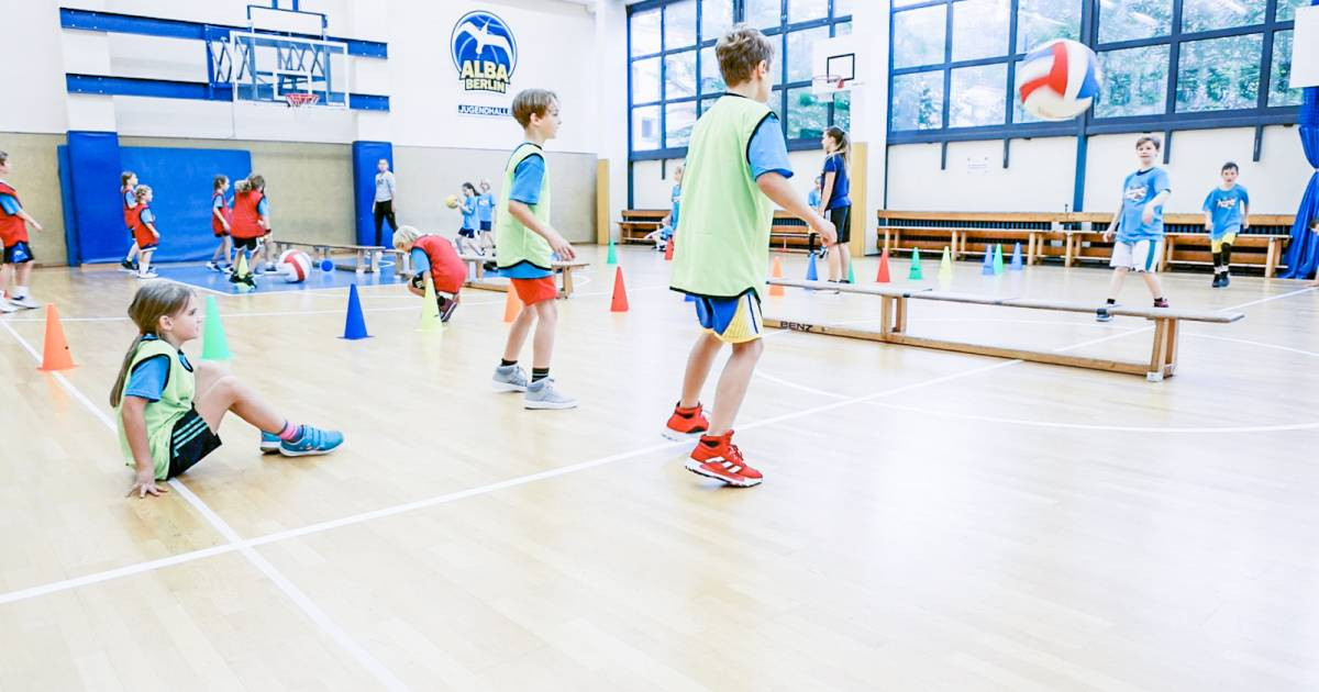 Prellball bringt den Spaß von der Tischtennisplatte auf ein großes Feld und eignet sich optimal für die Grundschule. Zwei Teams jagen sich einen großen Ball hin und her und schulen damit die Hand-Auge-Koordination und ihren Krafteinsatz. In dieser Variante gibt es eine Sonderaufgabe: Kurz hinsetzen.