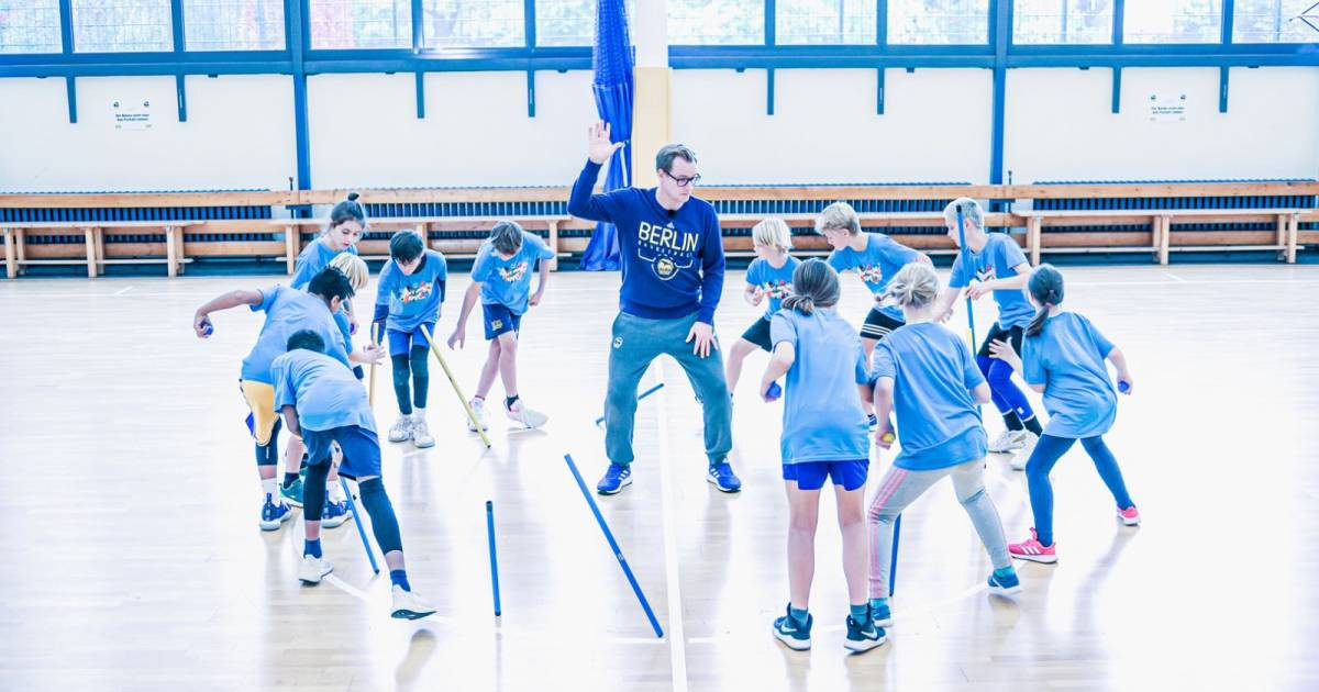 1. Jedes Kind benötigt eine Stange und einen Ball