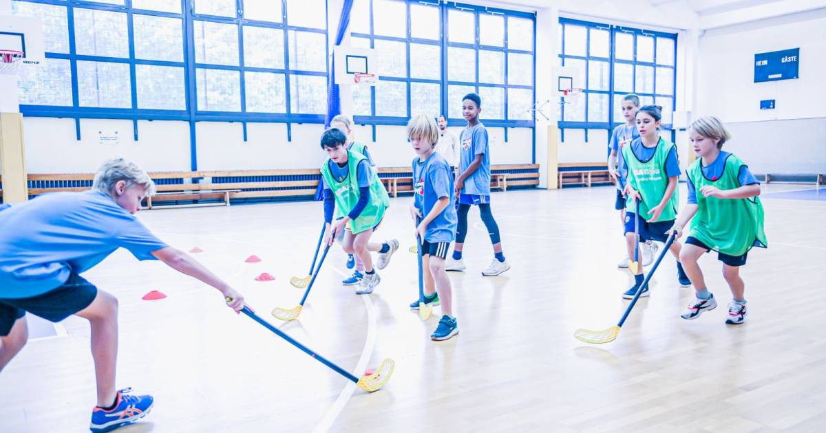- Zwei Teams einteilen und Hockeyschläger verteilen